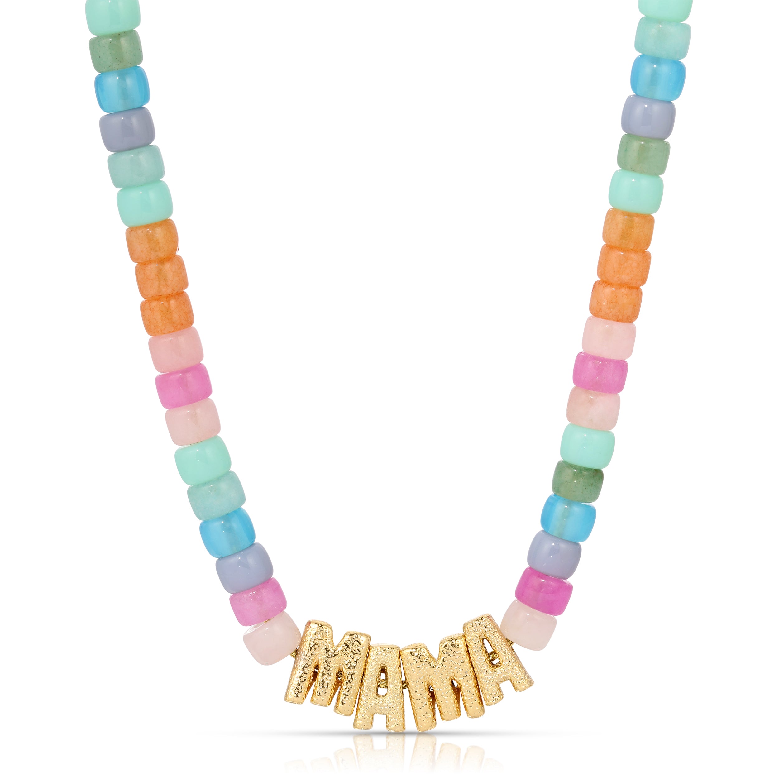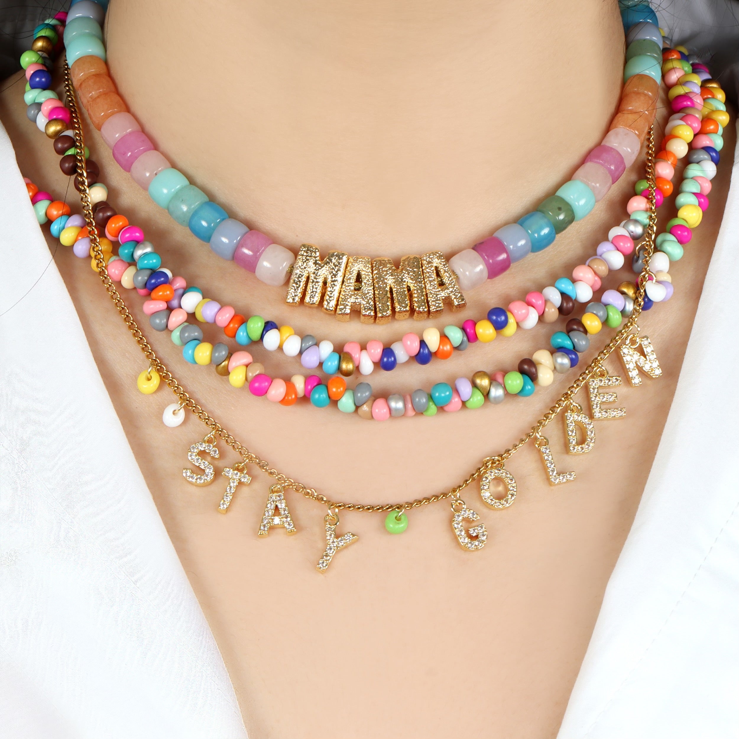 Add a stylish statement to your jewelry collection with our Gold-Plated MAMA Beads Necklace. This stunning piece features chic gold-plated MAMA beads beautifully paired with vibrant multi-colored beads, making it a perfect accessory for any occasion.