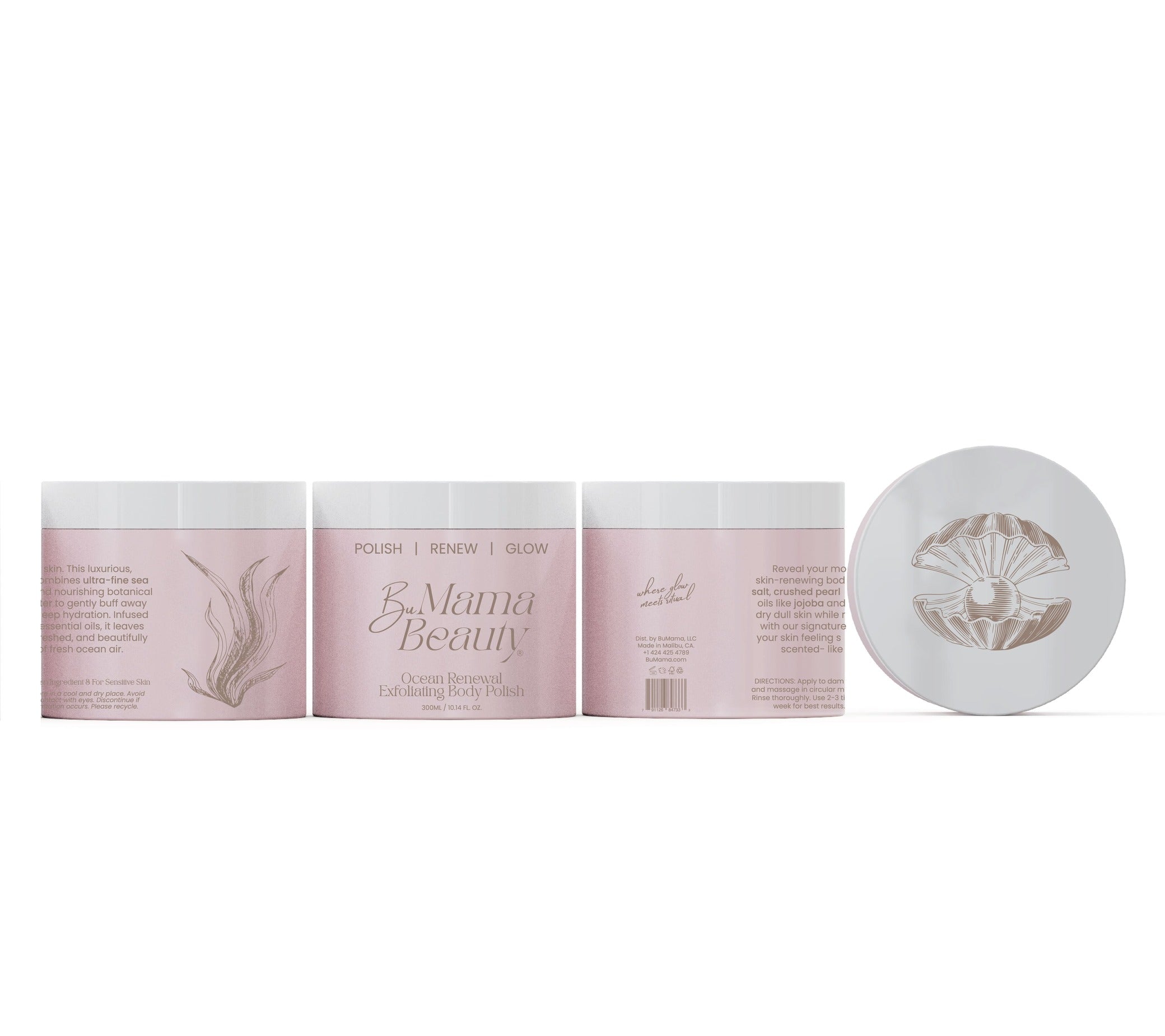 A luxurious body polish designed to reveal radiant, youthful skin. Crafted with fine sea salt for gentle exfoliation, crushed pearl powder for glow-enhancing renewal, and botanical oils to deeply hydrate and protect. Its lightweight, creamy texture smooths and softens while remaining suitable for sensitive skin—an indulgent ritual inspired by Malibu’s spirit of sun, sea, and slow living.