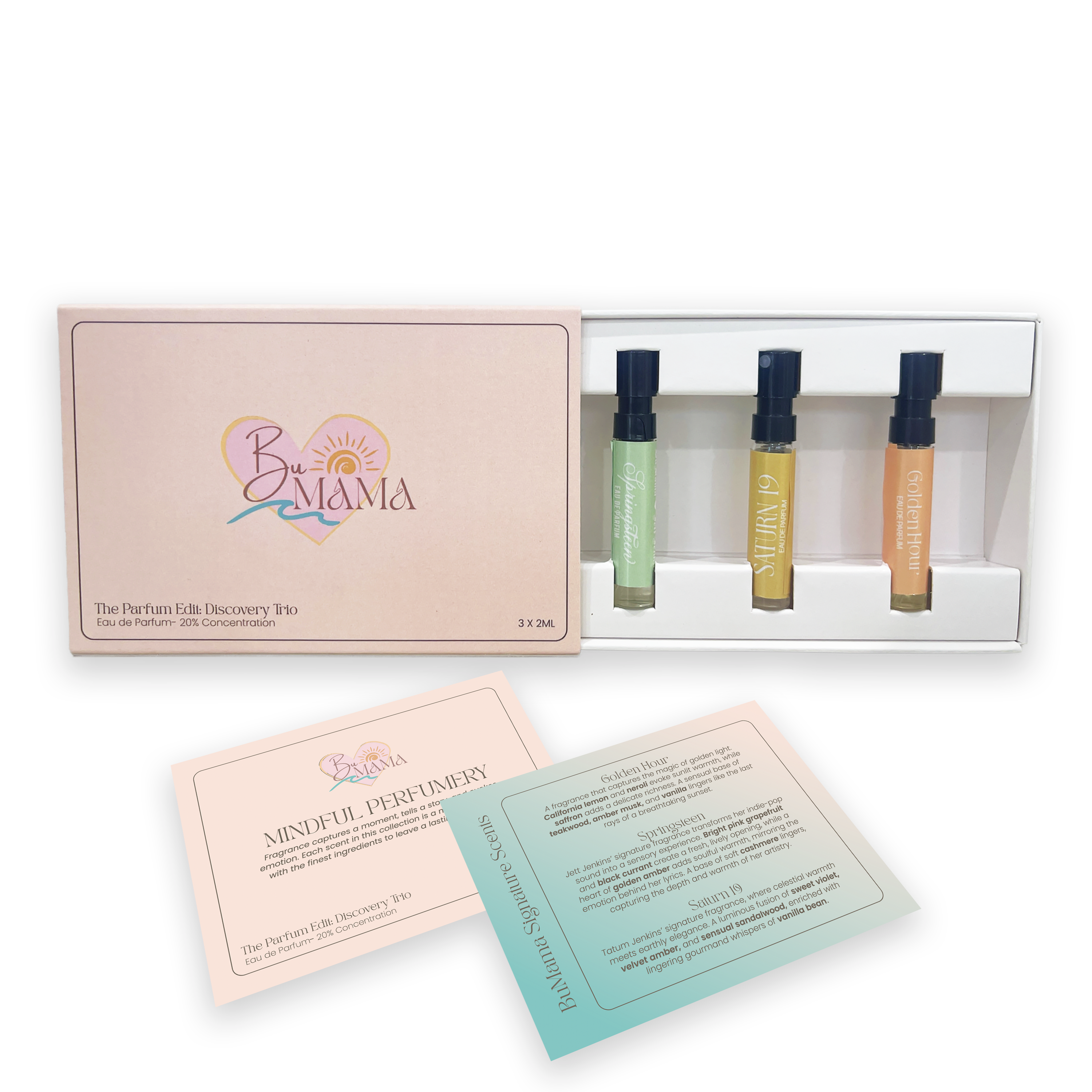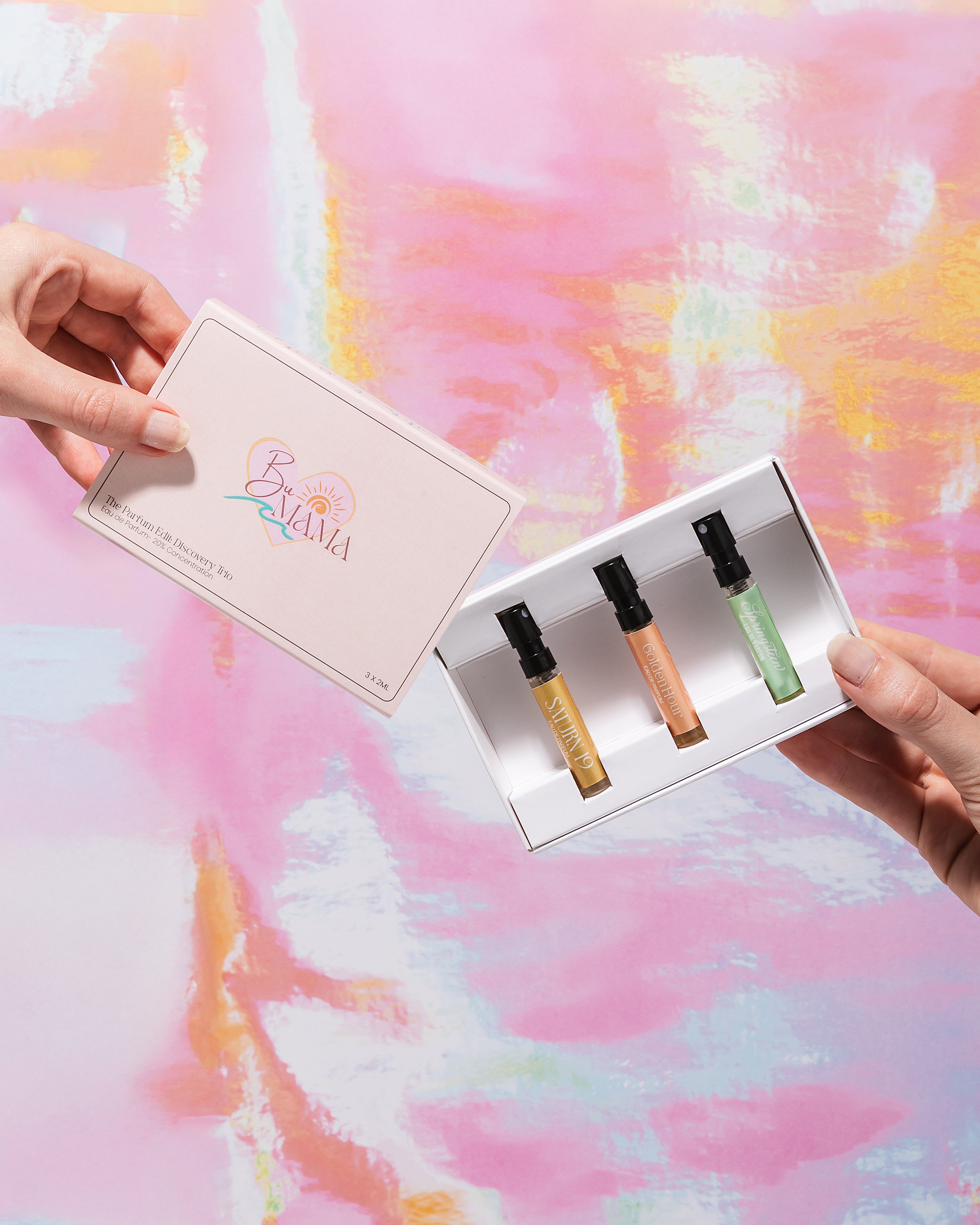 Awaken your senses. Discover your signature scent. Embark on a sensory journey with The Parfum Edit: Discovery Trio—featuring three unique Eau de Parfums that capture the essence of our bohemian, sun-soaked spirit. Handcrafted in Malibu with natural oils and mindful ingredients, each scent reflects a facet of free-spirited living.